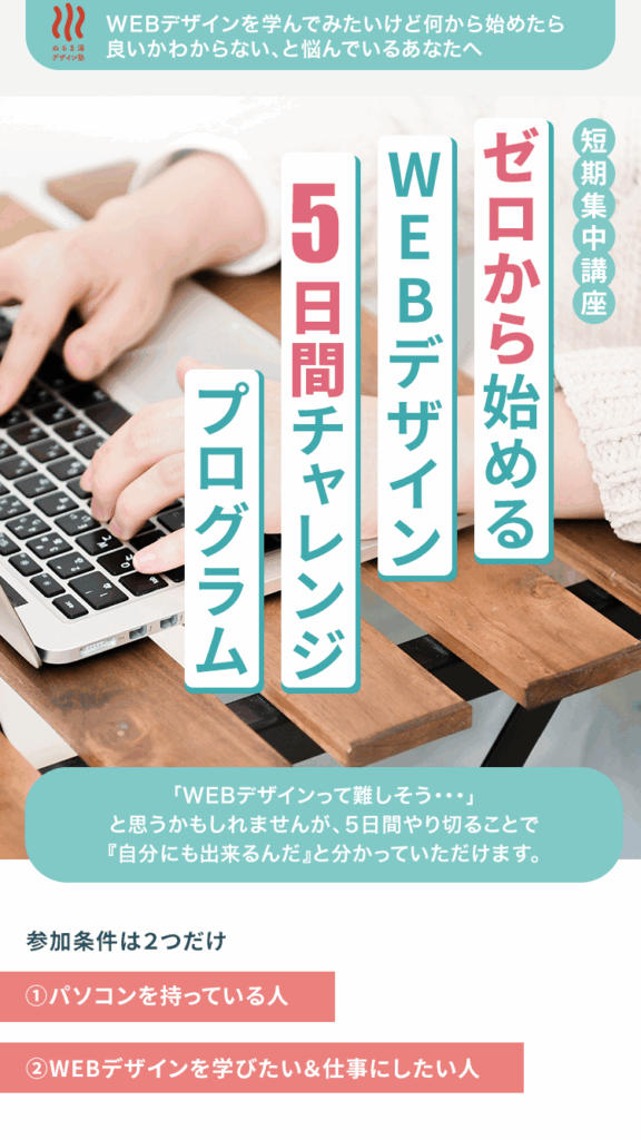 - 5日間で学べる!WEBデザインチャレンジ講座LP制作【前提条件】 ・目的:無料のWEBデザイン5日間チャレンジに参加してもらうこと。チャレンジ後には、最後にTHE… 続きを読む: 5日間で学べる!WEBデザインチャレンジ講座LP制作